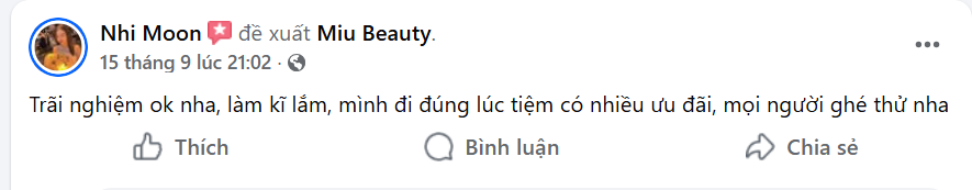 ✨ Miu Beauty – không gian làm đẹp chuẩn mực, nơi mỗi dịch vụ đều được chăm chút tỉ mỉ để tôn vinh nét đẹp tự nhiên và sự tự tin của bạn.